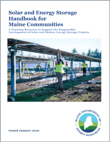 In January 2026, the Maine Department of Energy Resources published a new resource, Solar and Energy Storage Handbook for Maine Communities: A Planning Resource to Support the Responsible Development of Solar and Battery Energy Storage Projects. The handbook serves to assist local communities in planning for the development of solar and battery energy storage projects by providing guidance and materials on the following: